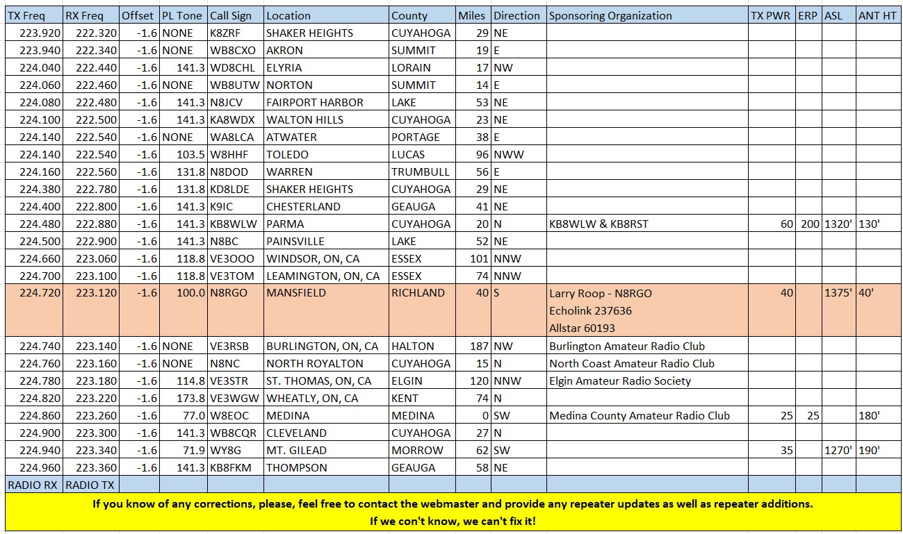 There is a Friday Night 220 Net out of Syracuse New York that I bring up from my repeater in Mansfield, Ohio through the Allstar Network at 28405. Anybody in or around the Mansfield area that can hit my repeater directly on 224.720 with a 100.00PL are welcome to join in. I do have a few people that check in through me via Echolink and that is fine as well, my Echolink number is 237636.